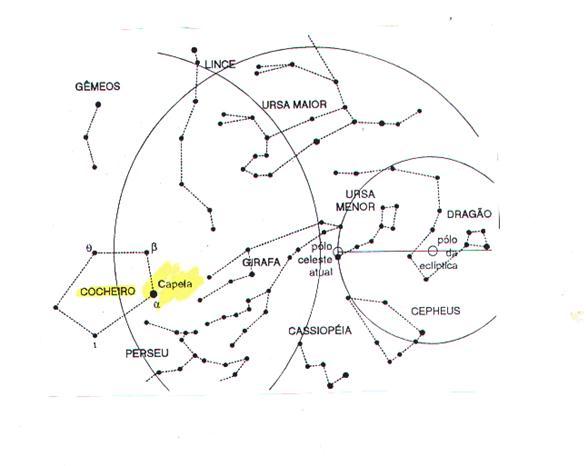 CAPELA está situada no hemisfério boreal e limitada pelas constelações da Girafa, Perseu e Lince, e, quanto ao Zodíaco, sua posição é entre Gêmeos e Touro.